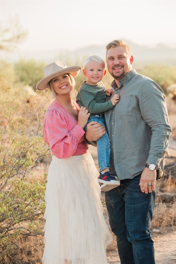 This mini session at McDowell Sonoran Preserve in North Scottsdale was such a joy! As a Scottsdale family photographer, I love capturing these short and sweet mini sessions that highlight authentic connections and genuine moments. This beautiful family of three was an absolute delight to photograph, and the desert scenery made the perfect backdrop for their family photography session.